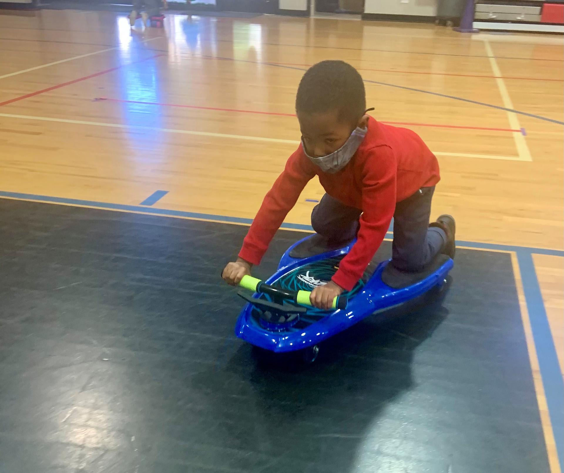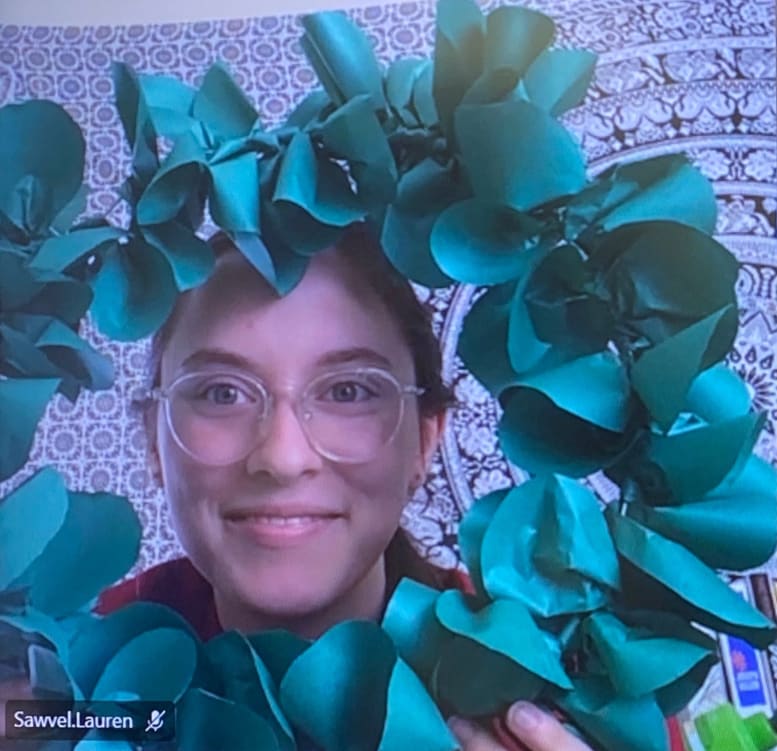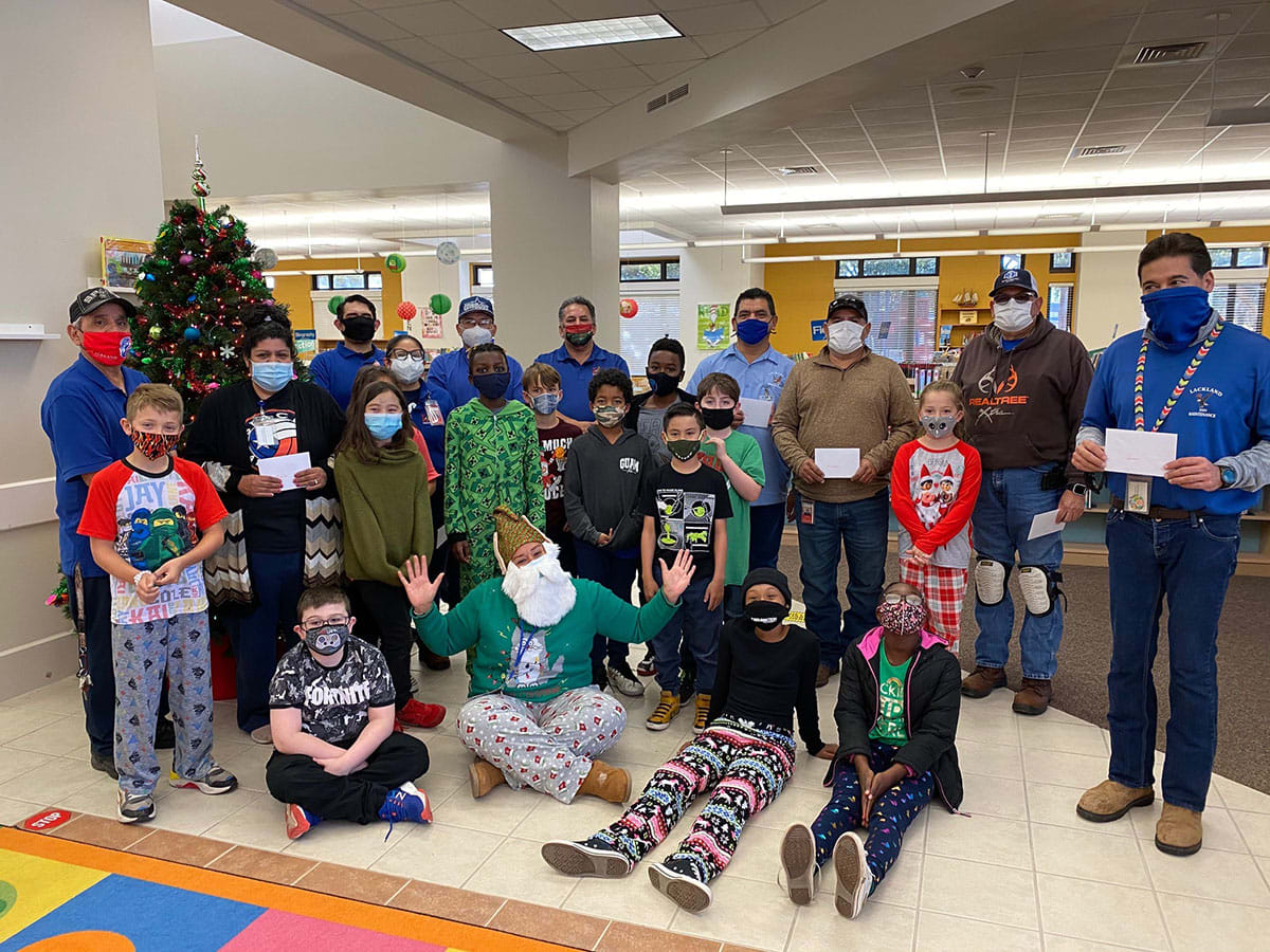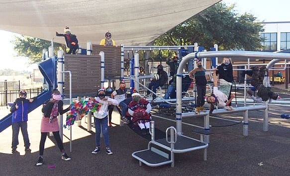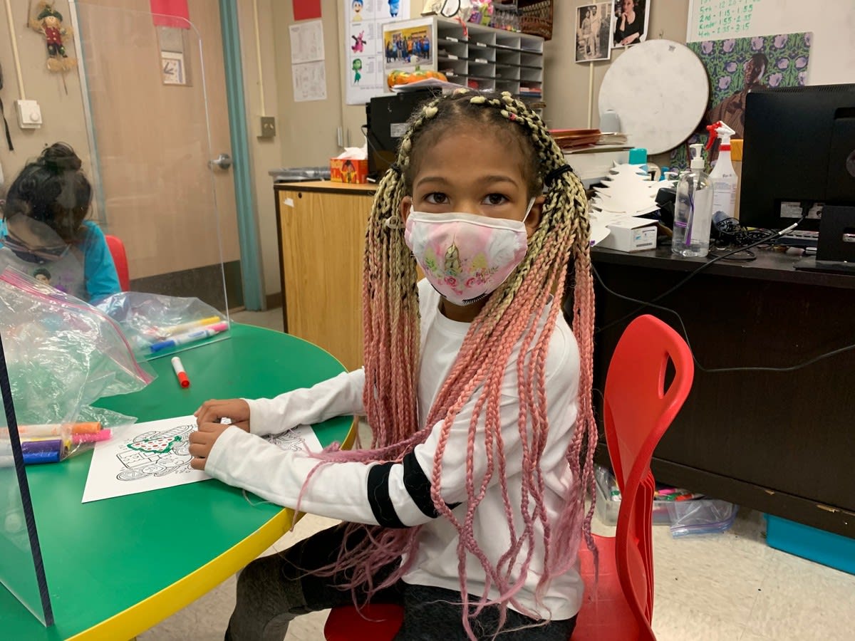 Ms. Duron's Community Service Class visited Ms. Rodriguez’s first grade class. Virtual and in-person learners were able to share their favorite holiday jokes and riddles. They colored in husky masks which were worn when they pretended to be Jingle the dog, the main character of the story. The high school students read “Jingle All the Way” by Tom Shay-Zapien. The story is about a little husky dog and his holiday adventures.