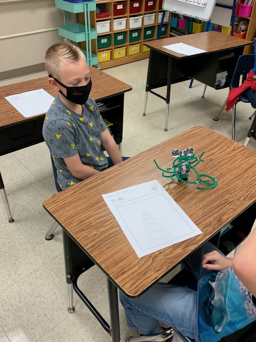 Mrs. Rodriguez’s 1st grade scientists planned and designed Christmas trees for Moose this week.
