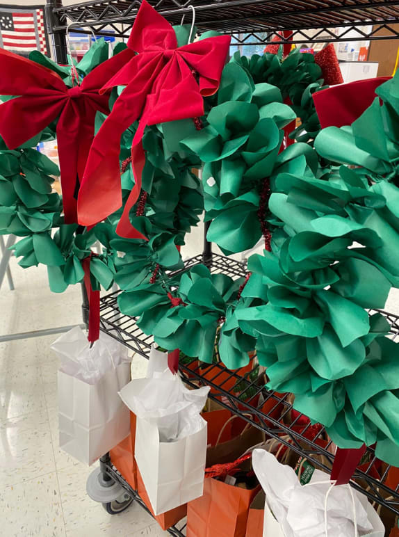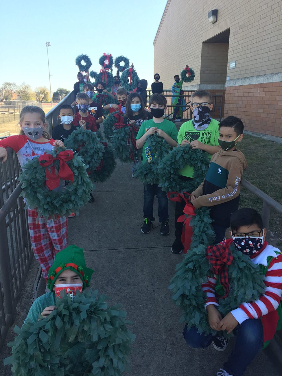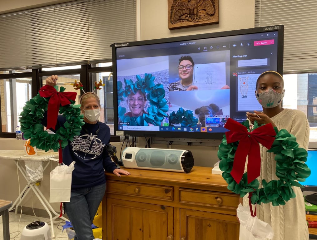 Time during the holidays is meant to be shared with loved ones, and Mrs. Duron's community service class made a goal to spread some holiday cheer to families at Seton Home in San Antonio, TX. Providence is a shelter for young moms and their children. The agency's vision is to stop the cycle of generational trauma and give every child and family a bright future, no matter their circumstances. The class handcrafted 16 wreaths to display in their rooms and bring a little more holiday cheer. To complete the project, students also made cards and added a few small gifts for the babies.