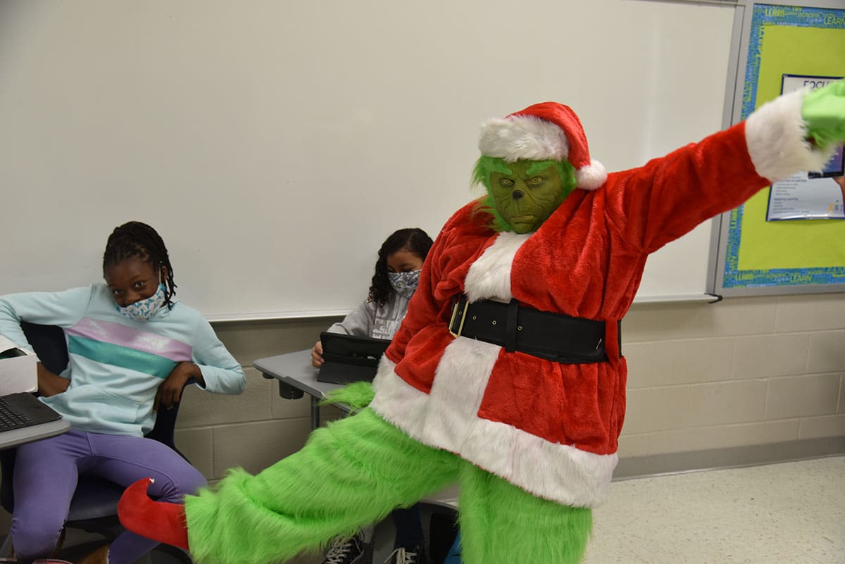 Grinch-y Green. Stink. Stank. Stunk! Fourth Graders have cold hands but very warm hearts this holiday season! Jazmyn and McKenzie show their grace while listening to the Nutcracker Ms. Perez’ Fourth Grade Class gains the upper hand this holiday season!😉