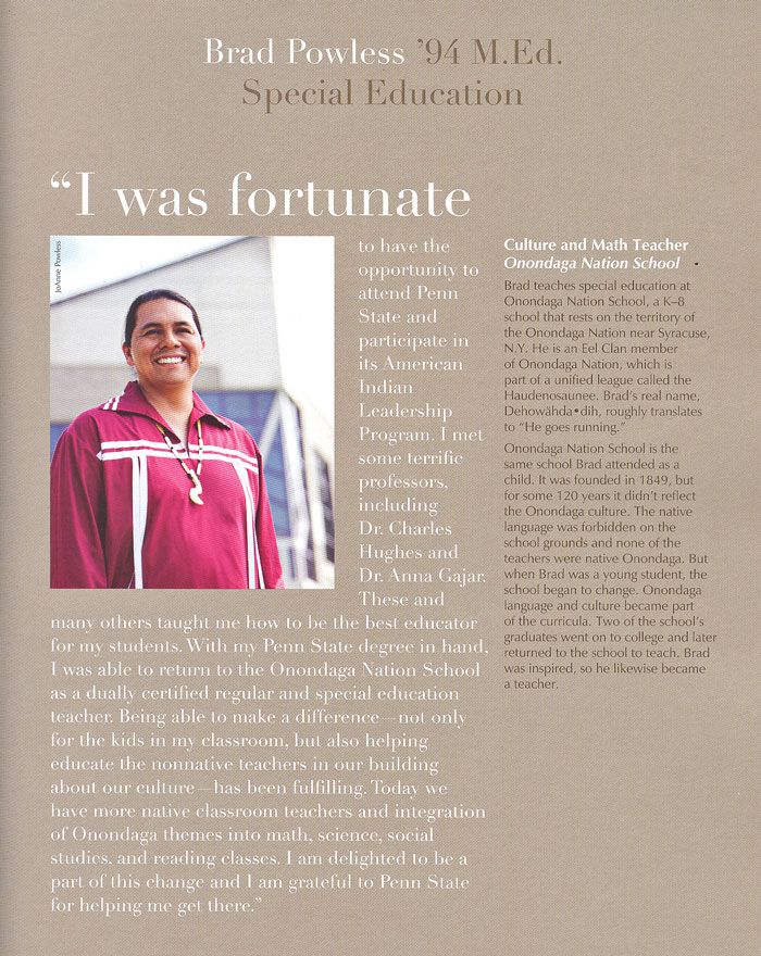 Penn State's College's Education has interviewed Mr. Powless about how his Penn State degree has shaped his life after leaving Happy Valley in 1994.
