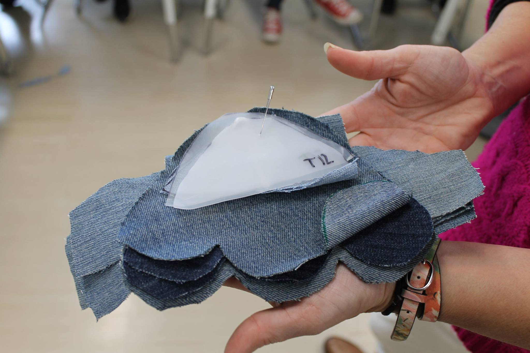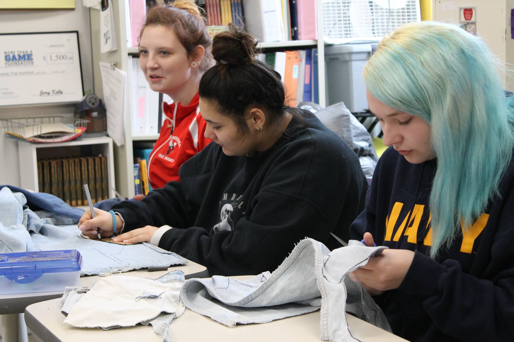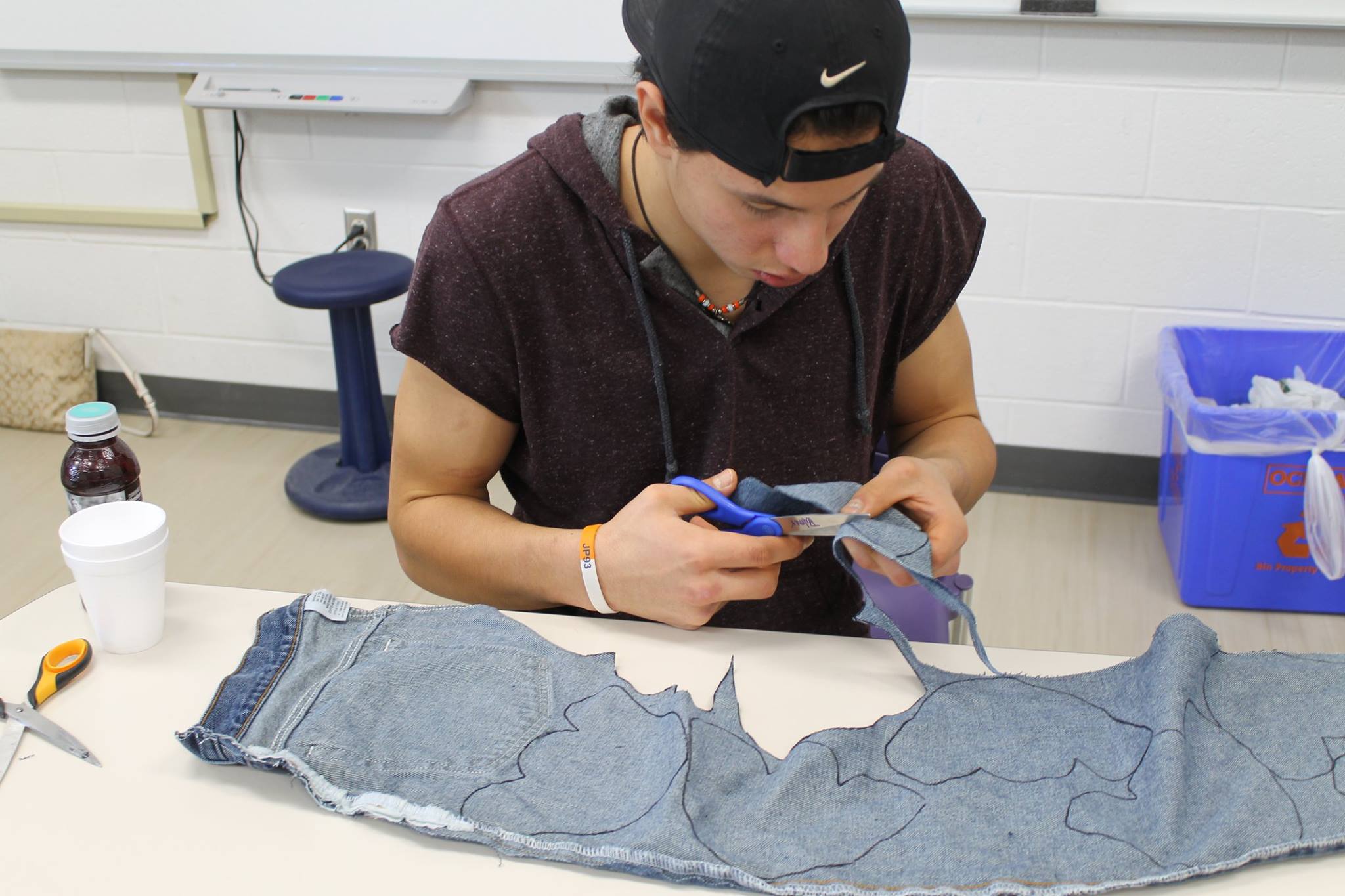 Students are working on the project with SoleHope, a nonprofit organization whose mission is to offer healthier lives and freedom from foot-related diseases for people living in Africa. SoleHope provides the shoe patterns and assembles the shoes. Students donate the denim, plastic and time it takes to cut the uppers.