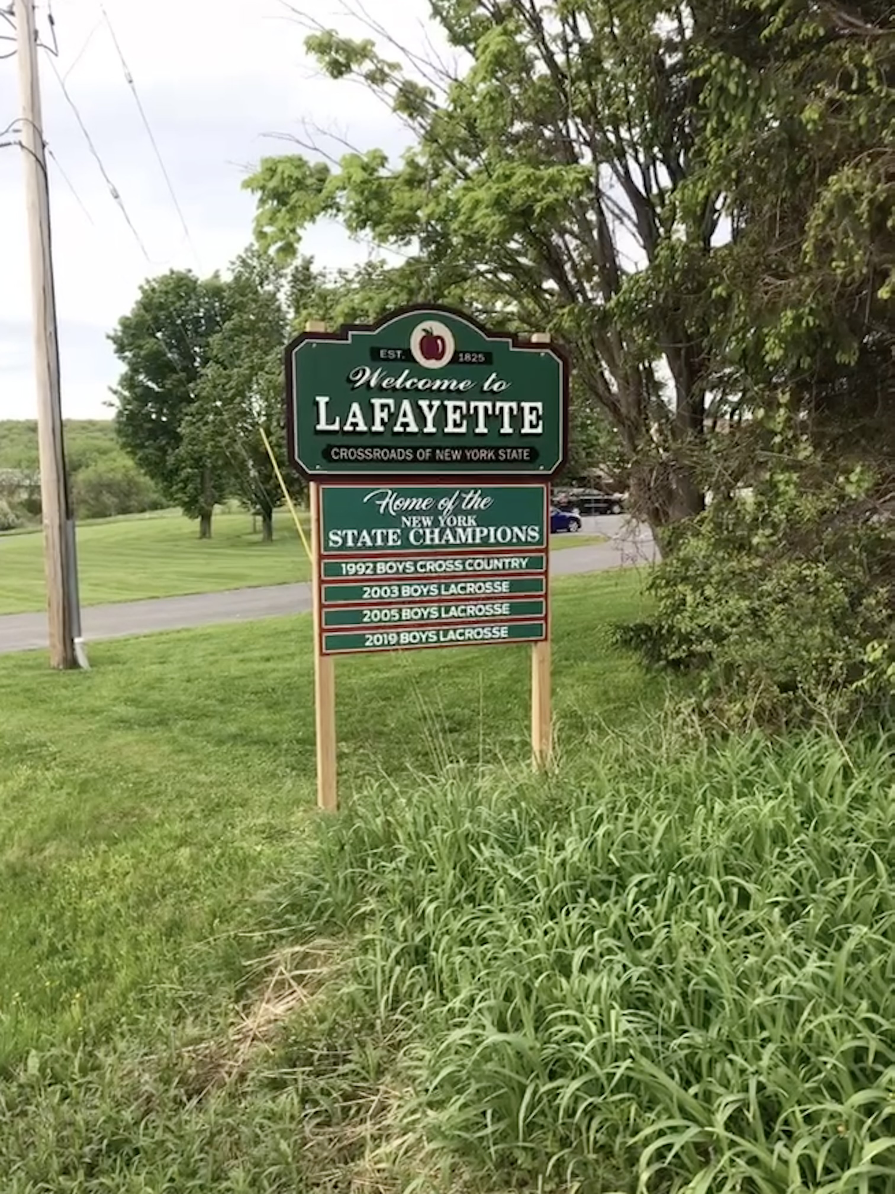 Recently, a group of LaFayette Central School District alumni worked with the Town of LaFayette to devise a way to honor the district's state championship athletic teams.That "way" was determined, and as you drive through LaFayette, be sure to check out the addition to the town sign!