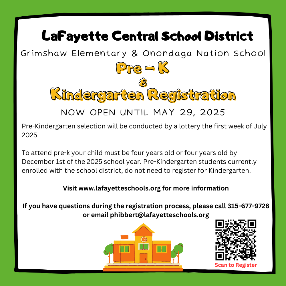 Pre-K and K Registration Now Open Unitl May 29, 2025