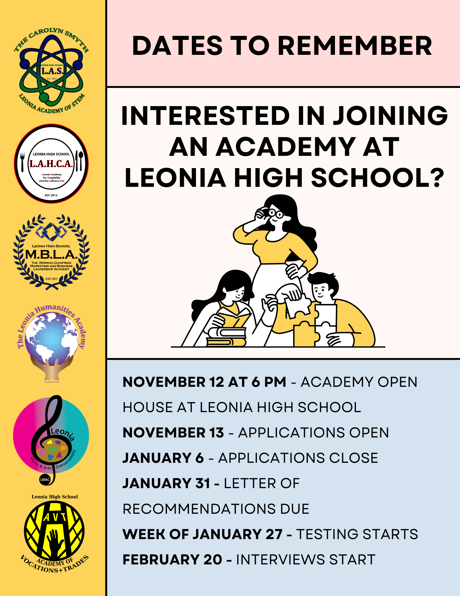 Academy Open House: November 12, 2024 @ 6pm at Leonia High School