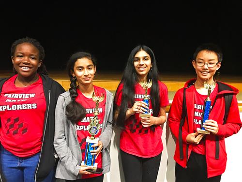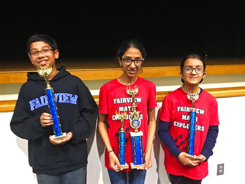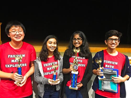 Welcome to Fairview Middle School Math Club. Math club provides students opportunities to have fun in Math, strengthen their mathematical capabilities and interact with other students of similar interests. Math Club members get lot of opportunities to participate in Math Competitions. Competitions and the practice sessions help students to challenge themselves and develop their problem solving skills. Students who are in 6th grade and have an A or B in their Pre-Algebra course, students who are in 7th grade and have an A or B in their Algebra course and students who are in 8th grade and have an A or B in their Geometry course are eligible to join Math club. 6th grade Math Club members meet every Tuesday and 7th and 8th graders meet on every Thursday from 4 – 5 :30 pm in Ms. Kurian’s classroom.Tournament