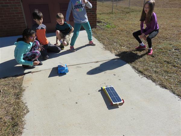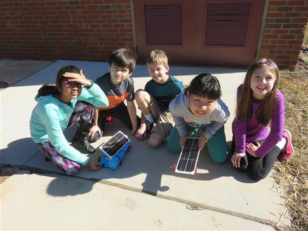 Students in 3rd-5th grades researched, planned, built, and tested their own solar cars with partners. Their designs were unique and showed innovation. After testing their cars, they worked to improve their designs, constantly testing and improving until they were happy with their creations.