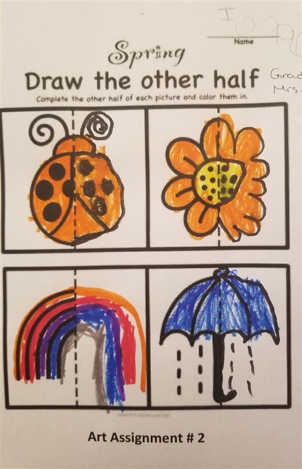 I am proud to share the many art lessons and extra art activities that are being turned in during our time of distance learning! Check back here each week as Mrs. Grussing will be adding more artworks! Let's keep the awesome pictures rolling in!