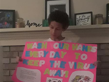 Creating a poster with a catchy phrase is how Chance chose to share the research he learned about the Coronavirus.