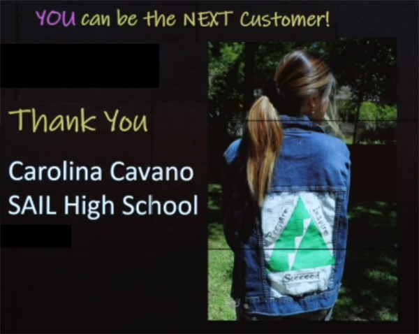 While all the class winners are invited to participate in the Shark Bowl, Carolina Cavano was chosen to represent SAIL as a finalist. Her business idea is Funky Junque Jackets, “one-of-a-kind creations that reflect current fashions as seen on popular social media sites and in magazines”. Great job, Carolina, Allen, and Natalia!