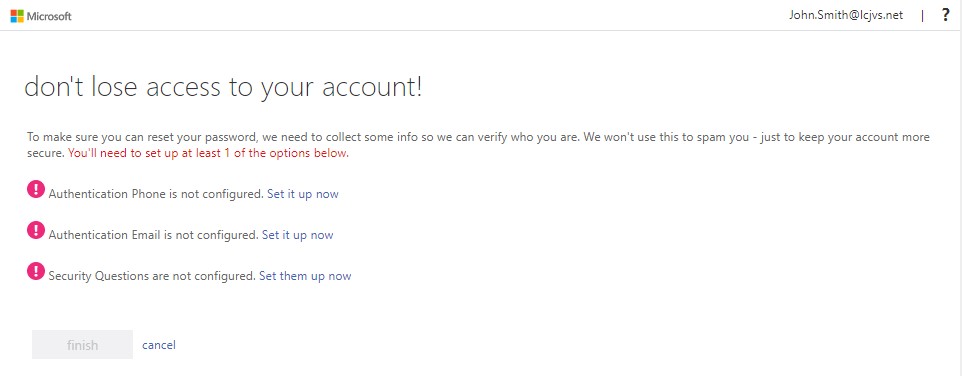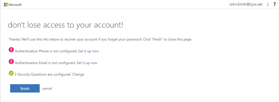 7. If you see a GREEN check mark on one of the three options below you have successfully set an alternate verification method. Click “Finish”.