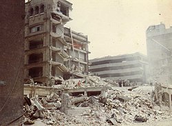 [edit]Cuauhtémoc, which includes the historic downtown, suffered the most damage. In this particular area, 258 buildings completely crumbled, 143 partially collapsed and 181 were seriously damaged. The next seriously affected area was Venustiano Carranza where 83 buildings collapsed, 128 partially collapsed and 2,000 structures were seriously damaged.[20] Damage was localized to the center parts of the city, leaving much of the residential outer rim unscathed, but the damage in the affected area was extensive. Over 720,000 tons of debris was removed during the first six weeks after the event.[19] The Metropolitan Commission for Emergencies of the Federal District reported 2,831 buildings damaged for the entire city: 31% or 880 were completely ruined, 13% were reinhabitable with major repairs and the rest, totaling 1581, were recoverable with minor repairs.[5] This translates to more than 30,000 housing units destroyed and another 68,000 units damaged.[19]