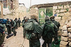 The Second Intifada continued in 2002 between the Israel Defense Forces and Palestinian paramilitary groups with an escalation in violence. Palestinian suicide bombings became coordinated to maximize the number of civilian casualties, while the Israeli military killed approximately twice as many Palestinians in retaliation.[8]: 73 In response to the suicide bombings, Israel carried out Operation Defensive Shield in March.[5]: 413 Under this operation, Israel occupied much of West Bank,[5]: 413 and it and briefly held Palestinian president Yasser Arafat under house arrest.[4]: 95 The Battle of Jenin was particularly destructive, with the United Nations finding both parties to be irresponsible regarding collateral damage.[4]: 96