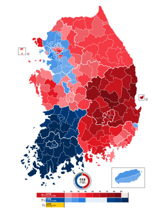 The party lost further ground in the 2020 National Assembly election.[53] However, the party has since regained ground after retaking the mayor's offices of Seoul and Busan in the 2021 South Korean by-elections. On matters of policy, politicians in this party generally support liberal economic policies (including support for chaebols,[54] the industrial conglomerates that dominate the South Korean economy) and hold conservative positions on national security, including hawkish stances on North Korea.[55] The party is particularly strong in the southeastern Gyeongsang region.[56]