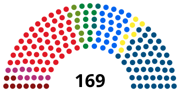 All 169 seats in the Storting 85 seats needed for a majority | |||||||||||||||||||||||||||||||||||||||||||||||||||||||||||||||||||||||||||||||||||||||||||||||||||||||||||||||||||||||||||||||||||||||||||||||||||||||||