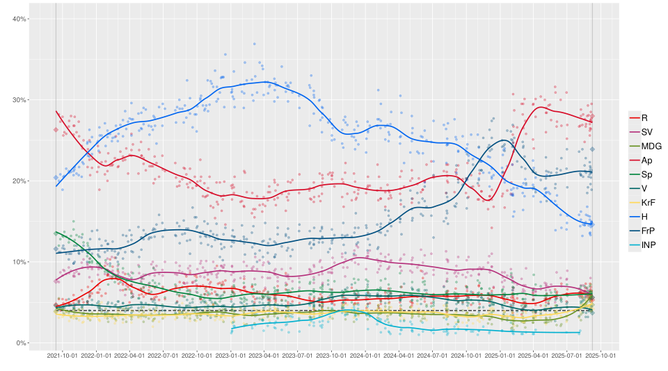 - ^ Dale, Kjetil H.; Sandven, Lidvard (30 August 2025). "Slik mistet de borgerlige grepet". TV 2. Bergen: TV 2 Group. Retrieved 30 August 2025.
