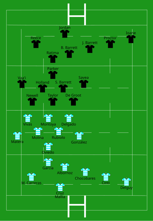 | Try: González 32' c García 58' c Con: S. Carreras (2/2) 33', 59' Pen: Albornoz (1/2) 2' Mallía (1/1) 14' S. Carreras (3/3) 51', 55', 74' | Report | Try: Proctor 19' m Newell 25' m Taukei'aho 68'c Con: B. Barrett (0/2) McKenzie (1/1) 69' Pen: B. Barrett (1/2) 11' McKenzie (1/1) 80+1' |