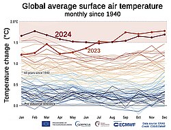 - ^ "The 2024 Annual Climate Summary / Global Climate Highlights 2024" (PDF). Copernicus Programme. 15 January 2025. Archived (PDF) from the original on 15 January 2025.
