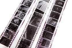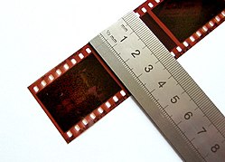 [edit]The 135 film has been made in several emulsion types and sensitivities (film speeds) described by ISO standards. Since the introduction of digital cameras the most usual films have colour emulsions of ISO 100/21° to ISO 800/30°. Films of lower sensitivity (and better picture quality) and higher sensitivity (for low light) are for more specialist purposes. There are colour and monochrome films, negative and positive. Monochrome film is usually panchromatic; orthochromatic has fallen out of use. Film designed to be sensitive to infrared radiation can be obtained, both monochrome and with false-colour (or pseudocolour) rendition. More exotic emulsions have been available in 135 than other roll-film sizes.