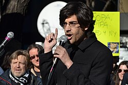 Swartz was involved in the campaign to prevent passage of the Stop Online Piracy Act (SOPA), which sought to combat Internet copyright violations but was criticized on the basis that it would make it easier for the U.S. government to shut down web sites accused of violating copyright and would place intolerable burdens on Internet providers.[68] After the bill's defeat, Swartz was the keynote speaker at the F2C:Freedom to Connect 2012 event in Washington, D.C., on May 21, 2012. In his speech, "How We Stopped SOPA", he said: