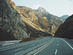 The establishment of the People's Republic of Albania under the leadership of Enver Hoxha was a significant epoch in modern Albanian history.[99] Hoxha's regime embraced Marxist–Leninist ideologies and implemented authoritarian policies, including prohibition of religious practices, severe restrictions on travel, and abolition of private property rights.[100] It was also defined by a persistent pattern of purges, extensive repression, instances of betrayal, and hostility to external influences.[100] Any form of opposition or resistance to his rule was met with expeditious and severe consequences, such as internal exile, extended imprisonment, and execution.[100] The regime confronted a multitude of challenges, including widespread poverty, illiteracy, health crises and gender inequality.[98] In response, Hoxha initiated a modernisation initiative aimed at attaining economic and social liberation and transforming Albania into an industrial society.[98] The regime placed a high priority on the diversification of the economy through Soviet-style industrialisation, comprehensive infrastructure development such as the introduction of a transformative railway system, expansion of education and healthcare services, elimination of adult illiteracy, and targeted advancements in areas such as women's rights.[101][102][103][104]