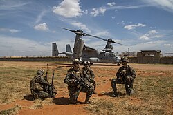 [edit]Since 2007, the Department of Defense (United States) has targeted Islamist groups, mainly al-Shabaab, within Somalia using airstrikes. These have included targeted drone strikes and United States Navy missile strikes. Special forces teams have conducted raids and acted as advisors.
