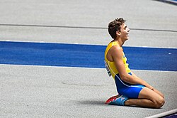 - ^ After securing the gold medal he narrowly failed three attempts at the world record-breaking measure of 6.19, see "Mondo Duplantis fails to break world record but strolls to pole-vault gold". The Guardian. 3 August 2021. Archived from the original on 3 February 2023. Retrieved 14 February 2022.