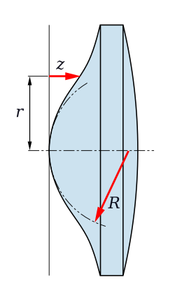 [edit]While in principle aspheric surfaces can take a wide variety of forms, aspheric lenses are often designed with surfaces of the form