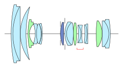 The asphere's more complex surface profile can reduce or eliminate spherical aberration and also reduce other optical aberrations such as astigmatism, compared to a simple lens. A single aspheric lens can often replace a much more complex multi-lens system. The resulting device is smaller and lighter, and sometimes cheaper than the multi-lens design.[1] Aspheric elements are used in the design of multi-element wide-angle and fast normal lenses to reduce aberrations. They are also used in combination with reflective elements (catadioptric systems) such as the aspherical Schmidt corrector plate used in the Schmidt cameras and the Schmidt–Cassegrain telescopes. Small molded aspheres are often used for collimating diode lasers.