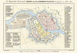 [edit]The Thirty Years' War between 1618 and 1648 devastated Berlin. One third of its houses were damaged or destroyed, and the city lost half of its population.[39] Frederick William, known as the "Great Elector", who had succeeded his father George William as ruler in 1640, initiated a policy of promoting immigration and religious tolerance.[40] With the Edict of Potsdam in 1685, Frederick William offered asylum to the French Huguenots.[41]