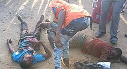 [edit]On 20 May, two bombs in the city of Jos, Plateau State, Nigeria, were detonated, killing at least 118 people and injuring more than 56 others. The bombs exploded 30 minutes apart, one at a local marketplace at approximately 3:00 and the second in a parking lot next to a hospital at approximately 3:30, where rescuers responding to the first accident were killed.[141] Though no group or individual has claimed responsibility, the attacks have been attributed to Boko Haram.[142]