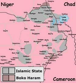 [edit]In 2014, Boko Haram militants increased their attacks on cities and towns in northern Nigeria and captured part of the country's northeast. These attacks included bombings in Maiduguri in January, July and November.[citation needed]