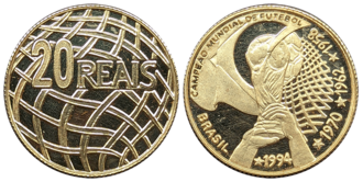 | 4 reais | Release date: 23 December 1994 Occasion: Commemorating Brazil's 4th FIFA World Cup win Units produced: 9 thousand | |