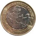 | 10 centavos | Release date: 31 May 1995 Occasion: The 50th anniversary of the Food and Agriculture Organization (FAO) Units produced: 1 million for each design Reverse: The 10 centavos coin depicts hands offering a plant shoot with folious ramifications, and the 25 centavos coin depicts crop cultivation. Both coins contain the inscriptions "FAO—1945/1995" and "alimentos para todos" (food for all).[13][14] | |