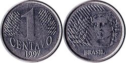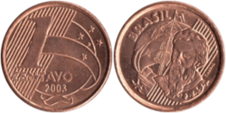 | 5 centavos | Obverse: The Southern Cross in right upper side. Reverse: Depicts Joaquim José da Silva Xavier (also known as Tiradentes), martyr of an early independence movement known as the Minas Conspiracy. In the background, a triangle, symbol of the movement, and a dove, symbol of peace and freedom. | |