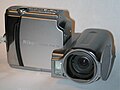 Uses 2 AA batteries, CCD sensor, lens shift Vibration Reduction, SD card storage | [14] | ||