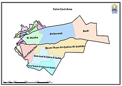 The "formal" city was also expanded. The most notable example was the creation of Madinat Nasr, a huge government-sponsored expansion of the city to the east which officially began in 1959 but was primarily developed in the mid-1970s.[143] Starting in 1977 the Egyptian government established the New Urban Communities Authority to initiate and direct the development of new planned cities on the outskirts of Cairo, generally established on desert land.[144][145][146] These new satellite cities were intended to provide housing, investment, and employment opportunities for the region's growing population as well as to pre-empt the further growth of informal neighbourhoods.[144] As of 2014, about 10% of the population of Greater Cairo lived in the new cities.[144]