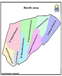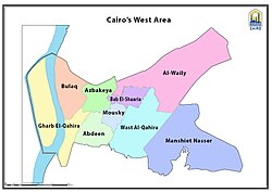 [edit]In the second half of the 20th century, Cairo continued to grow enormously in both population and area. Between 1947 and 2006, the population of Greater Cairo went from 2,986,280 to 16,292,269.[139] The population explosion also drove the rise of "informal" housing ('ashwa'iyyat), meaning housing that was built without any official planning or control.[140] The exact form of this type of housing varies considerably but usually has a much higher population density than formal housing. By 2009, over 63% of the population of Greater Cairo lived in informal neighbourhoods, even though these occupied only 17% of the total area of Greater Cairo.[141] According to economist David Sims, informal housing has the benefits of providing affordable accommodation and vibrant communities to huge numbers of Cairo's working classes, but it also suffers from government neglect, a relative lack of services, and overcrowding.[142]