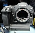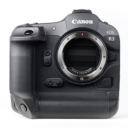 The Canon EOS R3[3][4] is a 24 megapixel full-frame mirrorless interchangeable-lens camera launched by Canon officially announced by Canon on 14 September 2021[5] alongside two RF mount lenses. The camera is available as body only with a MSRP of US$5,999.00.