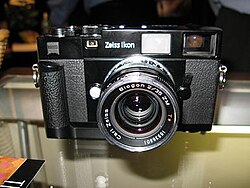 [edit]Zeiss also acquired the Voigtländer brand in 1956, putting it in the curious position of offering competing cameras in the same market segments, including professional rangefinders (Prominent (135), in competition with the Contax), amateur SLRs (Bessamatic/Ultramatic, competing with the Contaflex), and numerous compact and folding cameras through at least 1967,[27] when the Icarex, a Voigtländer design released under the Zeiss Ikon brand, was released to consolidate the competing SLR lines.