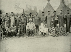 [edit]The European invasion of Central African territory began in the late 19th century during the Scramble for Africa.[32] Europeans, primarily the French, Germans, and Belgians, arrived in the area in 1885. France seized and colonized Ubangi-Shari territory in 1894. In 1911 at the Treaty of Fez, France ceded a nearly 300,000 km2 portion of the Sangha and Lobaye basins to the German Empire which ceded a smaller area (in present-day Chad) to France. After World War I France again annexed the territory. Modeled on King Leopold's Congo Free State, concessions were doled out to private companies that endeavored to strip the region's assets as quickly and cheaply as possible before depositing a percentage of their profits into the French treasury. The concessionary companies forced local people to harvest rubber, coffee, and other commodities without pay and held their families hostage until they met their quotas.[33]