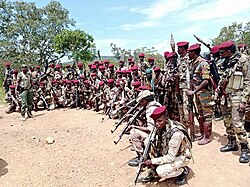 In eastern CAR, tensions erupted in competition between Ex-Séléka militias arising over control of a goldmine in November 2016, where MPC[165] and the FPRC coalition, which incorporated elements of their former enemy, the Anti-balaka,[163] attacked UPC.[173][174] The violence is often ethnic in nature with the FPRC associated with the Gula and Runga people and the UPC associated with the Fulani.[147] Most of the fighting was in the centrally located Ouaka prefecture, which has the country's second largest city Bambari, because of its strategic location between the Muslim and Christian regions of the country and its wealth.[165] The fight for Bambari in early 2017 displaced 20,000.[175][174] MINUSCA made a robust deployment to prevent FPRC taking the city and in February 2017, Joseph Zoundeiko, the chief of staff[176] of FPRC who previously led the military wing of Séléka, was killed by MINUSCA after crossing one of the red lines.[174] At the same time, MINUSCA negotiated the removal of Ali Darassa from the city. This led to UPC to find new territory, spreading the fighting from urban to rural areas previously spared. Additionally, the thinly spread MINUSCA relied on Ugandan as well as American special forces to keep the peace in the southeast, as they were part of a campaign to eliminate the Lord's Resistance Army, but the mission ended in April 2017.[163] By the latter half of 2017, the fighting largely shifted to the southeast where the UPC reorganized and were pursued by the FPRC and Anti-balaka with the level of violence only matched by the early stage of the war.[177][178] About 15,000 people fled from their homes in an attack in May and six U.N. peacekeepers were killed – the deadliest month for the mission yet.[179] In June 2017, another ceasefire was signed in Rome by the government and 14 armed groups including FPRC, but the next day fighting between an FPRC faction and Anti-balaka militias killed more than 100 people.[180] In October 2017, another ceasefire was signed between the UPC, the FPRC, and Anti-balaka groups, and FPRC announced Ali Darassa as coalition vice-president, but fighting continued afterward.[177] By July 2018 the FPRC was headed by Abdoulaye Hissène and based in the northeastern town of N'Délé.[181] In 2019, the FPRC split into two factions, a Runga group on one side, including Abdoulaye Hissene, and rival fighters from the Gula and Kara on the other side.[182]