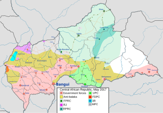 [edit]Much of the tension is also over historical antagonism between agriculturalists, who largely comprise Anti-balaka and nomadic groups, who largely comprise Séléka fighters.[52] There was ethnic violence during fighting between the Ex-Séléka militias FPRC and UPC, with the FPRC targeting Fulani people who largely make up the UPC and the UPC targeting the Gula and Runga people, who largely make up FPRC, as being sympathetic to FPRC.[147] In November 2016 fighting in Bria that killed 85 civilians, FPRC was reported targeting Fulani people in house-to-house searches, lootings, abductions and killings.[250]