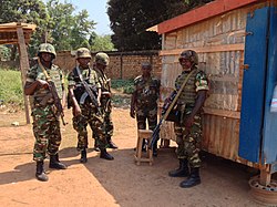 On 20 December 2020 Rwanda confirmed it had sent troops and Russia said it had sent 300 military instructors.[203][204][205] On 22 December, the CPC, in an offensive led by UPC, had taken the country's fourth largest city, Bambari, according to its mayor,[201] but the UN stated that its peacekeepers had retaken the city the next day.[198] On 28 December, it was announced by the electoral commission that 800 (14%) of polling stations failed to operate during the presidential and legislative elections due to violent attacks from armed rebels.[206]
