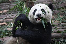 China is home to at least 551 species of mammals (the third-highest in the world),[145] 1,221 species of birds (eighth),[146] 424 species of reptiles (seventh)[147] and 333 species of amphibians (seventh).[148] Wildlife in China shares habitat with, and bears acute pressure from, one of the world's largest population of humans. At least 840 animal species are threatened, vulnerable or in danger of local extinction, due mainly to human activity such as habitat destruction, pollution and poaching for food, fur and traditional Chinese medicine.[149] Endangered wildlife is protected by law, and as of 2005[update], the country has over 2,349 nature reserves, covering a total area of 149.95 million hectares, 15 percent of China's total land area.[150] Most wild animals have been eliminated from the core agricultural regions of east and central China, but they have fared better in the mountainous south and west.[151][152] The Baiji was confirmed extinct on 12 December 2006.[153]