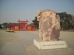 According to traditional Chinese historiography, the Xia dynasty was established during the late 3rd millennium BCE, marking the beginning of the dynastic cycle that was understood to underpin China's entire political history. In the modern era, the Xia's historicity came under increasing scrutiny, in part due to the earliest known attestation of the Xia being written millennia after the date given for their collapse. In 1958, archaeologists discovered sites belonging to the Erlitou culture that existed during the early Bronze Age; they have since been characterized as the remains of the historical Xia, but this conception is often rejected.[37][38][39] The Shang dynasty that traditionally succeeded the Xia is the earliest for which there are both contemporary written records and undisputed archaeological evidence.[40] The Shang ruled much of the Yellow River valley until the 11th century BCE, with the earliest hard evidence dated c. 1300 BCE.[41] The oracle bone script, attested from c. 1250 BCE but generally assumed to be considerably older,[42][43] represents the oldest known form of written Chinese,[44] and is the direct ancestor of modern Chinese characters.[45]