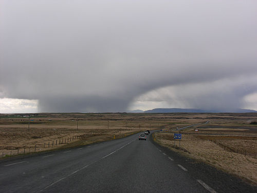 [edit]Rainfall rate equal to or greater than 100 millimetres (3.9 in) per hour is a cloudburst.[2][3] However, different definitions are used, e.g. the Swedish weather service SMHI defines the corresponding Swedish term "skyfall" as 1 millimetre (0.039 in) per minute for short bursts and 50 millimetres (2.0 in) per hour for longer rainfalls. The associated convective cloud can extend up to a height of 15 kilometres (9.3 mi) above the ground.[4]