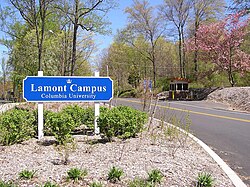 NewYork-Presbyterian Hospital is affiliated with the medical schools of both Columbia University and Cornell University. According to U.S. News & World Report's "2020–21 Best Hospitals Honor Roll and Medical Specialties Rankings", it is ranked fourth overall and second among university hospitals.[133] Columbia's medical school has a strategic partnership with New York State Psychiatric Institute, and is affiliated with 19 other hospitals in the U.S. and four hospitals in other countries. Health-related schools are located at the Columbia University Medical Center, a 20-acre (8.1 ha) campus located in the neighborhood of Washington Heights, fifty blocks uptown. Other teaching hospitals affiliated with Columbia through the NewYork-Presbyterian network include the Payne Whitney Clinic in Manhattan, and the Payne Whitney Westchester, a psychiatric institute located in White Plains, New York.[134] On the northern tip of Manhattan island (in the neighborhood of Inwood), Columbia owns the 26-acre (11 ha) Baker Field, which includes the Lawrence A. Wien Stadium as well as facilities for field sports, outdoor track, and tennis. There is a third campus on the west bank of the Hudson River, the 157-acre (64 ha) Lamont–Doherty Earth Observatory and Earth Institute in Palisades, New York. A fourth is the 60-acre (24 ha) Nevis Laboratories in Irvington, New York, for the study of particle and motion physics. A satellite site in Paris holds classes at Reid Hall.[11]