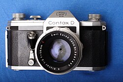 [edit]The loss of the Contax production tools at the Dresden factories turned out to be a blessing in disguise, as it forced the East German part of the company to design a camera without relying on the older design. The new design chief Wilhelm Winzenberg was not involved in the camera side of Zeiss-Ikon, this also allowed a brand-new Contax design to be developed, to follow Hubert Nerwin's wartime plan to make a Contax SLR camera.