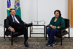 [edit]On August 5, 2019, Justice Rosa Weber also gave Bolsonaro a 15-day deadline to clarify a statement in which he suggested that former president Dilma Rousseff had participated in armed actions during the military dictatorship that resulted in the death of US Army Captain Charles Chandler. On receiving the "Personality of the Year" award from the Brazil-United States Chamber of Commerce in Texas, Bolsonaro said that "those who until recently occupied the government had their hands stained with blood in the armed struggle, even killing a captain, as I am a captain, in those sad years we had in the past". American Captain Chandler was killed on October 12, 1968, in the Sumaré neighborhood, on the west side of the city of São Paulo, in an attack carried out by three militants from the Popular Revolutionary Vanguard (VPR) and the National Liberation Action (ALN). Dilma never belonged to any of these groups.[142][143]